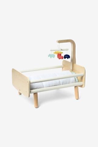Ce lit pour poupée en bois allie douceur, réalisme et design soigné pour accompagner les premiers jeux d’imitation dès 2 ans. Avec son mobile coloré suspendu, il stimule l’imaginaire tout en créant un rituel apaisant autour du coucher. Il est livré avec une couette et un oreiller assortis. Stable et élégant, il trouve naturellement sa place dans la chambre pour prolonger les instants de jeu tout en tendresse.