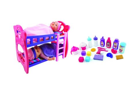 Ce produit est extrait d'une liste de cadeaux (Anniversaire, Noël, ...) déposée sur Kadolog. Kadolog permet de créer des listes de cadeaux (Anniversaire, Noël, ...) en toute liberté. Il est possible d'ajouter toutes vos envies cadeaux et de recevoir les dons directement sur votre compte. Avec les dons reçus, vous êtes alors libre d'aller acheter vos produits (comme ce 'Lit superposé Bedtime avec 2 poupées bébé et accessoires ') où et quand vous le souhaitez.