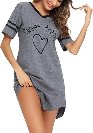 Litherday Chemise de nuit pour femme en coton confortable à manches courtes, Gris foncé., XL : Amazon.com.be: Mode