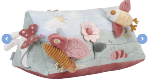 Ce triangle d'activité Flowers & Butterflies contient de nombreuses activités pour éveiller les sens de votre bébé. Peluches douces, étiquettes, papier froissé, couleurs contrastées... Il peut s'amuser pendant des heures !