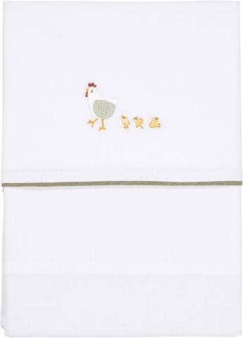 Little Dutch - Drap de lit brodé Little Farm. Ce drap de berceau brodé Little Farm présente une broderie d'un poulet et de poussins et est composé à 100...