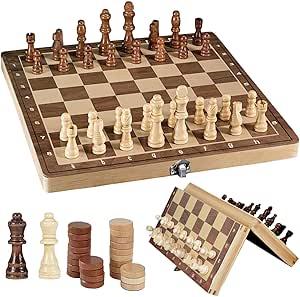 vu que Livia et Basile apprennent les échecs à l'école, ils souhaitent jouer à la maison - Jeu d'échecs magnétique en bois - Backgammon - 3 en 1 - Portable - Échiquier pliable - Pour les activités familiales - Échiquier en bois de qualité supérieure : Amazon.com.be: Jouets
