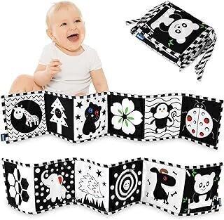 Livre tissu pour bébé, double face noir et blanc, pliable et réutilisable.