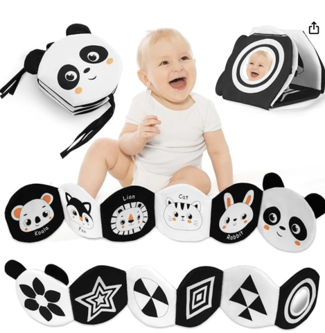 HOTUT Livre d'eveil Double Face en Tissu, Livre Tissu Bébé Noir Et Blanc, Livre Bébé Souple Pliable Réutilisable, Favorise la Vision et Développement Cerveau Bébé,