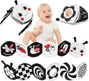 HOTUT Livre d'Éveil en Tissu Noir et Blanc - Stimulation Sensorielle Montessori, Double Face pour Bébés 6-12 Mois - Cadeau de Naissance Idéal : Amazon.com.be: Bébé et Puériculture