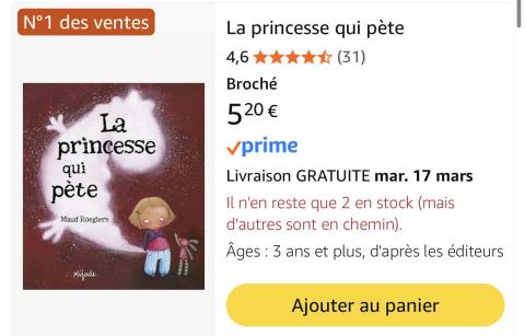 Ce produit est extrait d'une liste de cadeaux (Anniversaire, Noël, ...) déposée sur Kadolog. Kadolog permet de créer des listes de cadeaux (Anniversaire, Noël, ...) en toute liberté. Il est possible d'ajouter toutes vos envies cadeaux et de recevoir les dons directement sur votre compte. Avec les dons reçus, vous êtes alors libre d'aller acheter vos produits (comme ce 'Livre la princesse qui pete ') où et quand vous le souhaitez.
