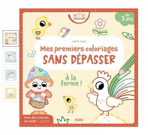 Un livre de coloriages avec des contours vernis qui aident à ne pas déborder pour faire découvrir les animaux aux petits. En page de droite, l'enfant pourra colorier une scène simple. En bonus, en page de gauche, il trouvera un dessin avec des contours à repasser.