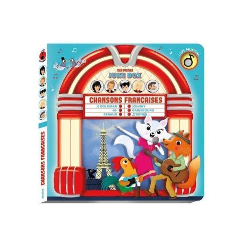 Faites découvrir à votre enfant les titres culte de la chanson française dans ce grand livre façon jukebox ! Votre tout-petit s'amuse à chercher la puce sonore dans une grande scène joliment illustrée et appuie dessus pour lancer la musique tout seul. Un vrai moment de complicité et d'émotion à partager ! Dans cet ouvrage, 5 titres incontournables avec les vraies voix des chanteurs : - Jean-Jacques Goldman : Quand la musique est bonne - Renaud : Mistral Gagnant - Johnny Halliday : L'envie - Serge Gainsbourg : La javanaise - -M- : Je dis Aime Et en bonus, une double page de jeu des bruits !