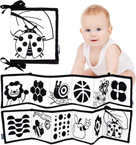 Livre Noir et Blanc Bébé 81*15cm Livre en Tissu pour Bébé Livre à double face bébé Livres en Tissu sensoriel pliable pour bébé livre en Tissu Jouet de voiture bébé Éducation précoce pour le nouveau-né