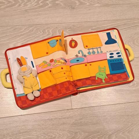 Petit lapin fait différents rituels avant d'aller dormir. Notre garçon pourra le déplacer de pièce en pièce, ouvrir tous les tiroirs et les armoires ! 🚿