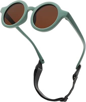 LOJUDI Lunettes de soleil pour bébé de 0 à 24 mois, polarisées, avec sangle réglable, cadre en silicone souple, rond, protection UV400, lunettes de soleil pour bébé de 0 à 2 ans, Cadre vert / lentille : Amazon.com.be: Mode