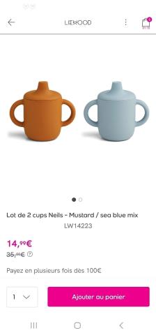 Ce produit est extrait d'une liste de naissance déposée sur Kadolog. Kadolog permet de créer des listes de naissance en toute liberté. Il est possible d'ajouter toutes vos envies cadeaux et de recevoir les dons directement sur votre compte. Avec les dons reçus, vous êtes alors libre d'aller acheter vos produits (comme ce 'Lot 2 cups neils ') où et quand vous le souhaitez.