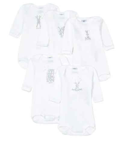 Petit Bateau - Lot 5 Bodies Lapin Croisés Coton Bio - Blanc 1 mois.