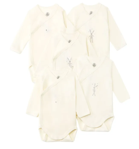 Petit Bateau - Lot 5 Bodies Lapin Croisés Coton Bio - Blanc 3 mois.