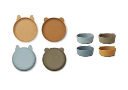 - Lot de 4 assiettes en silicone Olivia (Blue Fog / Khaki & Golden Caramel Oat Mix)