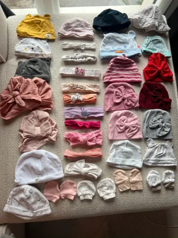 Lot bonnets bandeaux moufles bébé - Lot bonnets bandeaux moufles bébé