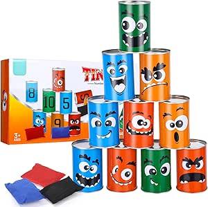 Lot de 10 boîtes et 3 sacs à lancer, jeu de jardin pour enfants, jeux de plein air