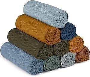 Lot de 10 langes carrés en mousseline pour nouveau-nés, garçons et filles, respirants et doux pour la peau
