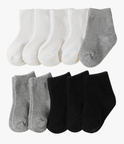 QIYIENDIAN 10 Pairs Soft Cotton Baby Socks Elastic Solid Colors Unisex, Black, White, Grey, 0-6 months : Amazon.com.be: Fashion