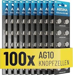 Lot de 100 piles bouton alcalines AG10 LR1130 - 1,5 V.