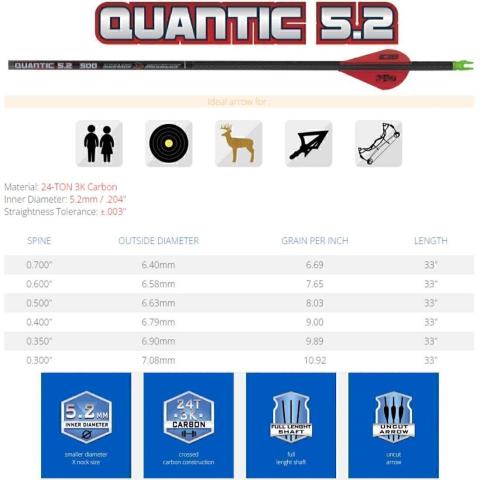 Le lot de 12 flèches Quantic ID 5.2 en carbone 3K de Skylon présente une construction légère et résistante en carbone 3K.