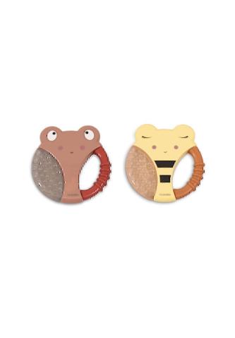 Le lot de 2 anneaux de dentition réfrigérés Bee & Larva Filibabba. Idéal pour soulager bébé lors des poussées dentaires 🧊