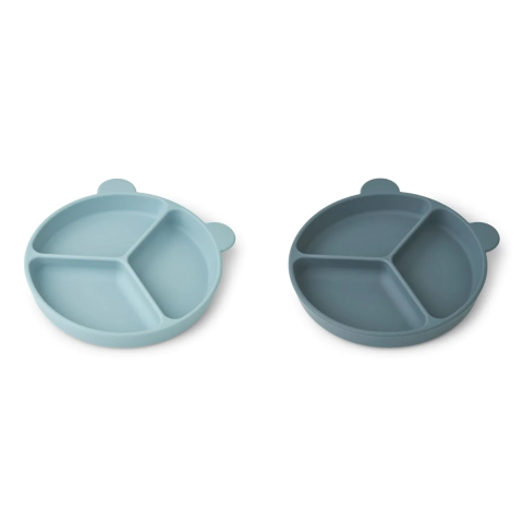 ASSIETTES A COMPARTIMENT POUR BÉBÉ - PACK DE 2 L’assiette ventouse à compartiment Stacy en forme d'animaux a une fine base en silicone qui adhère à différentes surfaces, ce qui rend presque impossible pour les enfants de soulever ou de basculer, mais de glisser facilement sur la table.