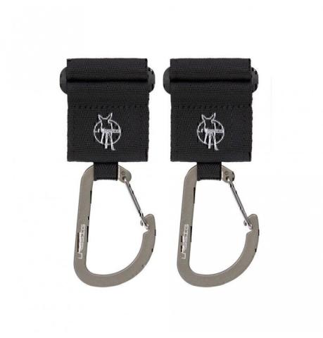 Les deux attaches poussette noires avec mousqueton sont pratiques.