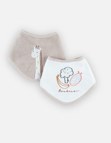 Lot de 2 bavoirs bandana en éponge, beige/blanc | Noukie's