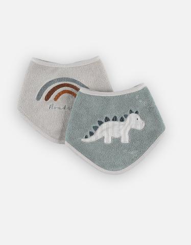 Lot de 2 bavoirs bandana en éponge, vert/beige | Noukie's