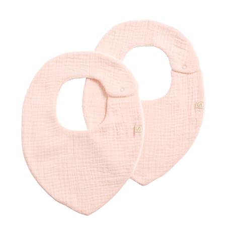 Lot de 2 bavoirs en gaze de coton - uni petale rose - Lot de 2 bavoirs en coton UNI Pour les premiers repas de bébé, Sauthon a décliné un lot de deux bavoirs en double gaze de coton. Bavoirs à deux faces: une fa