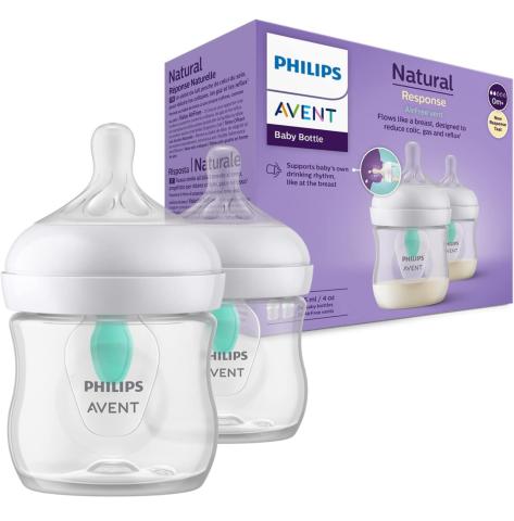 Philips Avent Lot de 2 biberons à Réponse Naturelle de 125 ml avec valve AirFree, sans BPA, pour les bébés de 0 mois et + (modèle SCY670/02)