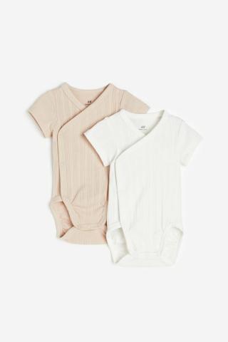 Bodies à manches courtes en jersey de coton très doux et côtelé. Modèle croisé devant avec fermeture pressionnée sur les côtés et à l'entrejambe pour faciliter le change. Coutures froncées autour des ...