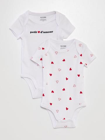 Lot de 2 bodies pour des instants câlins tout en style !- Bodies fantaisie - Lot de 2 - Col US - Manches courtes - Ouverture pressionnée - 1 imprimé 'petit coeur d'amour' - 1 motif coeurs all-over