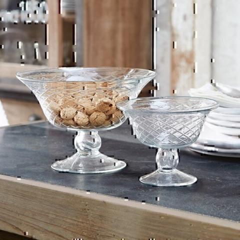 Lot de 2 coupes Kadence - Nobles coupes en verre taillé à motif à losanges. Pour les fruits ou les biscuits. Ces deux coupes en verre de forme classique ouvrent l'appétit. Grâce à leur motif taillé en