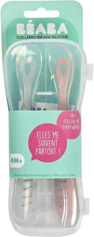Lot de 2 cuillères en silicone Bébé démarque Béaba - Boite de transport incluse