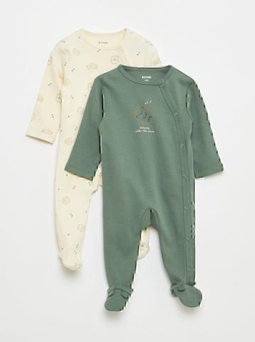 Pour des nuits en toute légèreté. - Lot de 2 dors bien légers - En jersey - Avec pieds - Col rond - Manches longues - Ouverture pressions totale sur le côté - 1 imprimé all over - 1 couleur unie