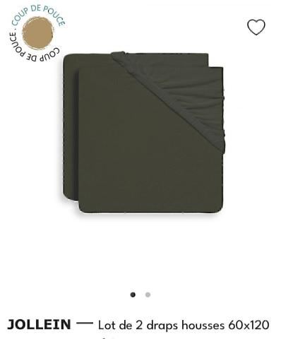 Optez pour ces draps housses bébé 60x120 cm leaf green de marque Jollein. Conçus en tissu stretch en pur jersey de coton. Plusieurs coloris. Livraison rapide...