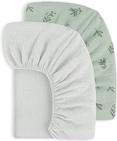 Lot de 2 Draps Housses pour Enfants 100% Coton Mousseline Draps de lit pour Bébé Drap Housse pour Lit de Voyage Draps D'appoint 60x120cm(Feuille Verte) : Amazon.fr: Bébé et Puériculture