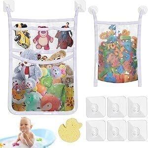Lot de 2 filets de baignoire pour jouets, jouets de bain avec 6 crochets autocollants et 1 éponge de bain, filet de bain pour jouets, filet de bain pour enfants et bébés : Amazon.com.be: Bébé et Puériculture