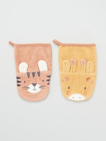 - Lot de 2 gants de toilette 'animaux' - 100% coton - Dimensions : 21 x 13 cm