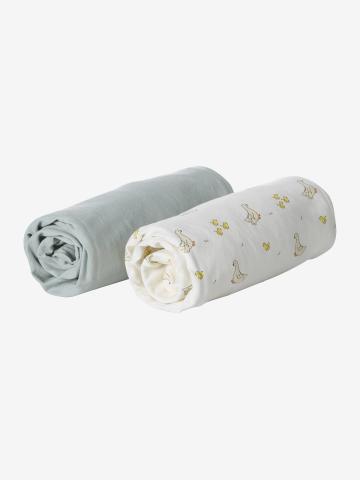2 housses en coton bio, respectueuses de la peau de bébé et de la planète. Elles protègeront le matelas de votre berceau ou cododo.