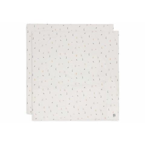 Jambo en gaze de coton. Leur format généreux de 115 x 115 cm vous permettra de varier leurs utilisations, tantôt servant de bavoir, tantôt de doudou réconfortant recouvert de votre odeur.