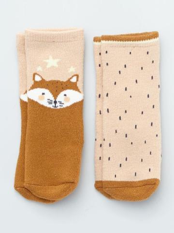 Lot de 2 paires de chaussettes antidérapantes - Orange/beige - forme de renard - Kiabi - 4.50€ - Taille : 3-6 mois ?