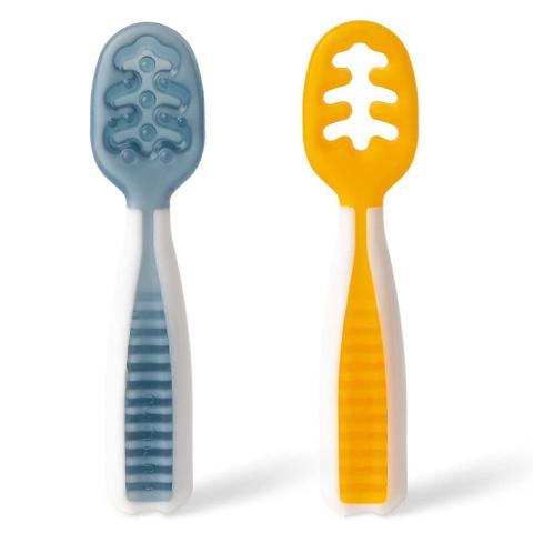 Achat Lot de 2 Pré-cuillères - Bleu et Orange Num Num (NUM100) sur L'Armoire de Bébé, la boutique puériculture des (futures) mamans branchées.