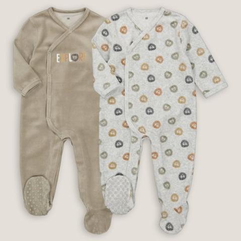 Détails produit • Col V • Manches longues • Fermeture croisée devant et entrejambe pressionnés pour faciliter l'enfilage et le change • Pieds antidérapants à partir de 12 mois (74 cm) • Lot de 2 : 1 pyjama uni avec texte et tête de lion imprimés devant + 1 pyjama imprimé têtes de lionComposition et Entretien • 75% coton, 25% polyester • Température de lavage 30° cycle délicat • Température de repassage faible / blanchiment interdit • Séchage en tambour faible • Pas de nettoyage à sec• OEKO-TEX® Standard 100. La certification OEKO-TEX® Standard 100 contrôle les substances nocives des produits textiles via un label indépendant et international.