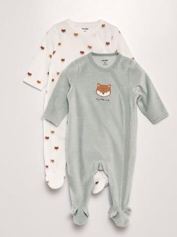 Un lot pratique et mignon pour chouchouter vos bébés allant de 0 à 12 mois. - Lot de 2 pyjamas dors-bien - En velours - Col rond - Manches longues - Ouverture à pressions de haut en bas devant - 1 avec motifs pomme all-over - 1 avec motifs nuage en relief