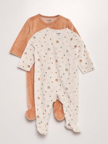 Un lot pratique et mignon pour chouchouter vos bébés allant de 0 à 12 mois. - Lot de 2 pyjamas dors-bien - En velours - Col rond - Manches longues - Ouverture à pressions de haut en bas devant - 1 avec motifs pomme all-over - 1 avec motifs nuage en relief