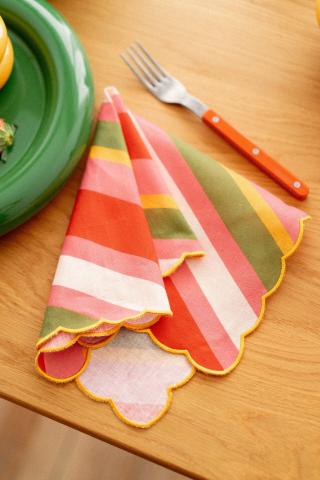 De la couleur dans les assiettes. Rayures vitaminées waow 40 x 40 cm Mélange lin et coton Fabriquées au Portugal