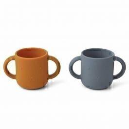 Les 2 tasses en silicone Gene de Liewood sont spécialement conçu pour aider les petits à s'entraîner à boire seul d’un gobelet ouvert.